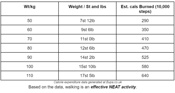 When it comes to looking into our overall activity (and therefore calories burned) with respect to weight loss, we need to look at the time we spend moving away from our favourite exercises in the gym. Calorie burning away from specific exercise is known as “Non Exercise Activity Thermogenesis”, or NEAT for short. NEAT happens all the time and contributes a large part to our overall calorie burning (energy expenditure) during the day. Things like walking, gardening, doing household chores, chasing around after the kids, even *ahem* sex are all examples of NEAT activities. Not just that, but subconscious movements like jiggling your legs when sat at your desk are NEAT actions.